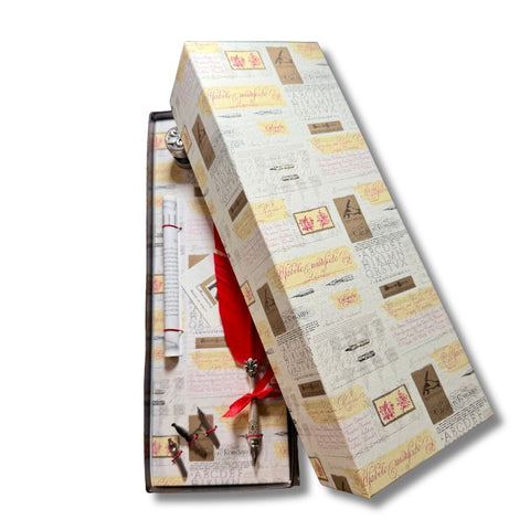 JUEGO DE ESCRITURA CON PLUMA, TINTA Y 3 PUNTAS