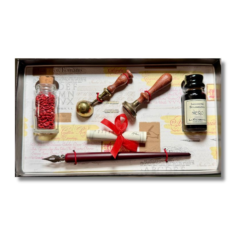 JUEGO DE PLUMA CON TINTA, SELLO PARA LACRAR Y LACRE K1866