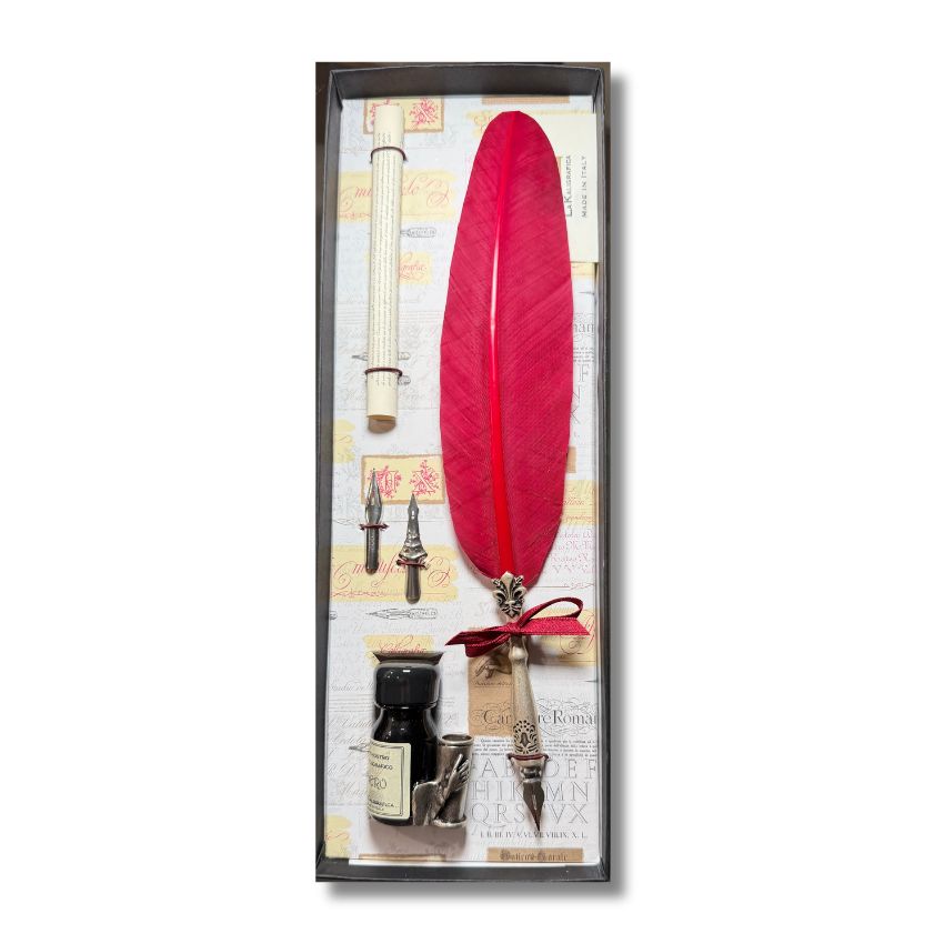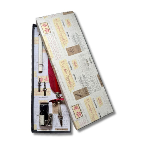 JUEGO ESCRITURA CON PLUMA, TINTA, PORTAPLUMA Y DOS PUNTAS
