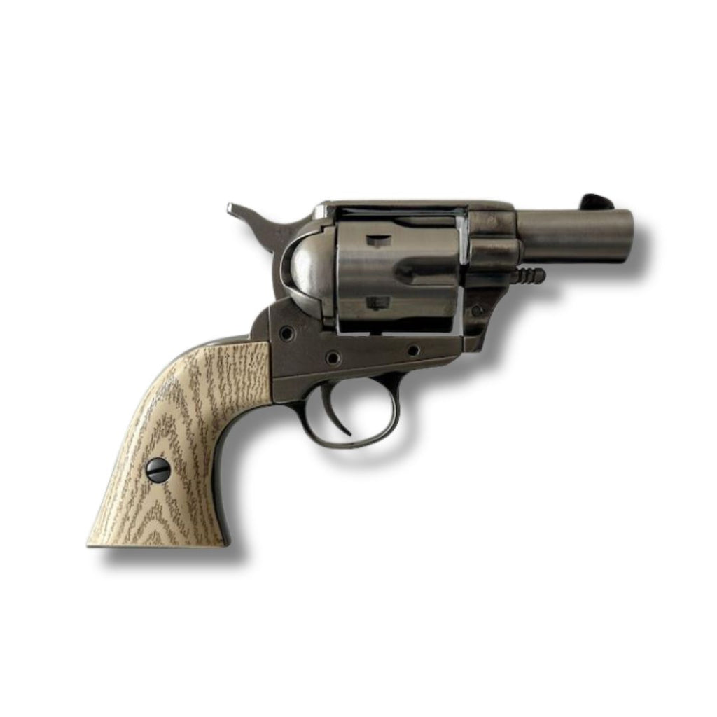 Réplica del Colt Pocket USA 1873, una joya compacta inspirada en las versiones más discretas del legendario revólver Colt Single Action Army. Una pieza que evoca el espíritu del Viejo Oeste, ideal para coleccionistas, recreadores y amantes de la historia.