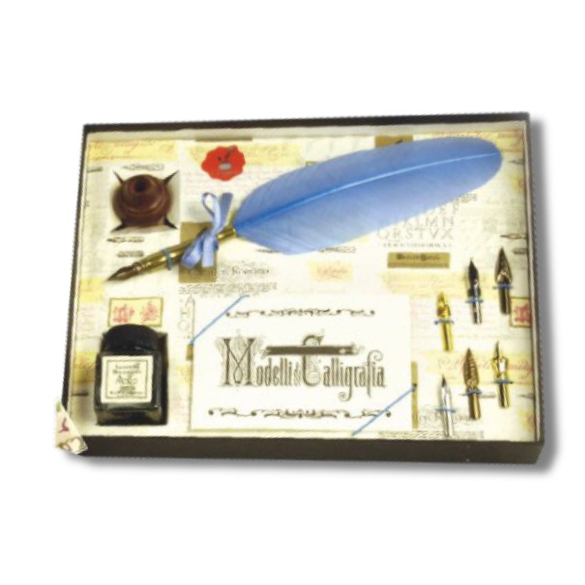 JUEGO DE ESCRITURA CON PLUMA, PORTAPLUMA Y 6 PUNTAS