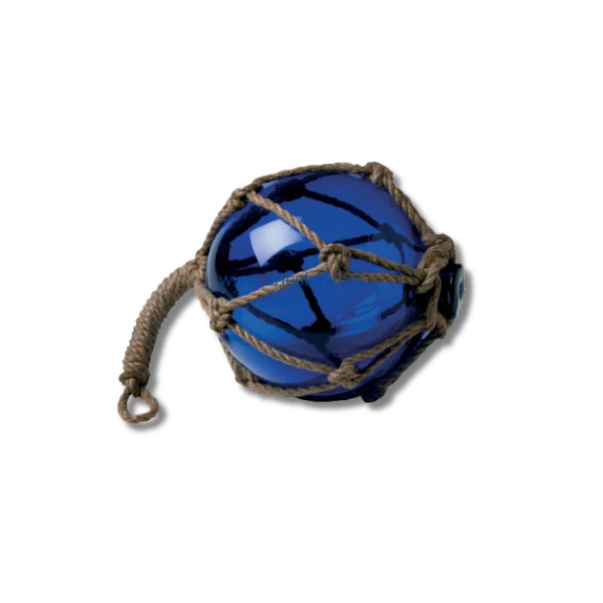 Boya de pesca azul. La boya de pesca era un antiguo flotador constituido de una bola de vidrio envuelta de una cuerda trenzada. Se utilizó hasta los años 50. Estos flotadores se fijaban en las redes de pesca para que se mantuvieran en la superficie mientras derivaban por la corriente.