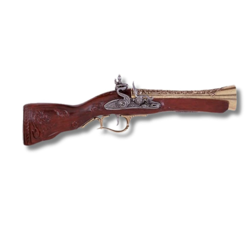 replica de trabuco pirata del siglo XVIII, este tipo de arma era cargada por la boca del cañón, se le puede considerar a esta arma como la predecesora de la escopeta.